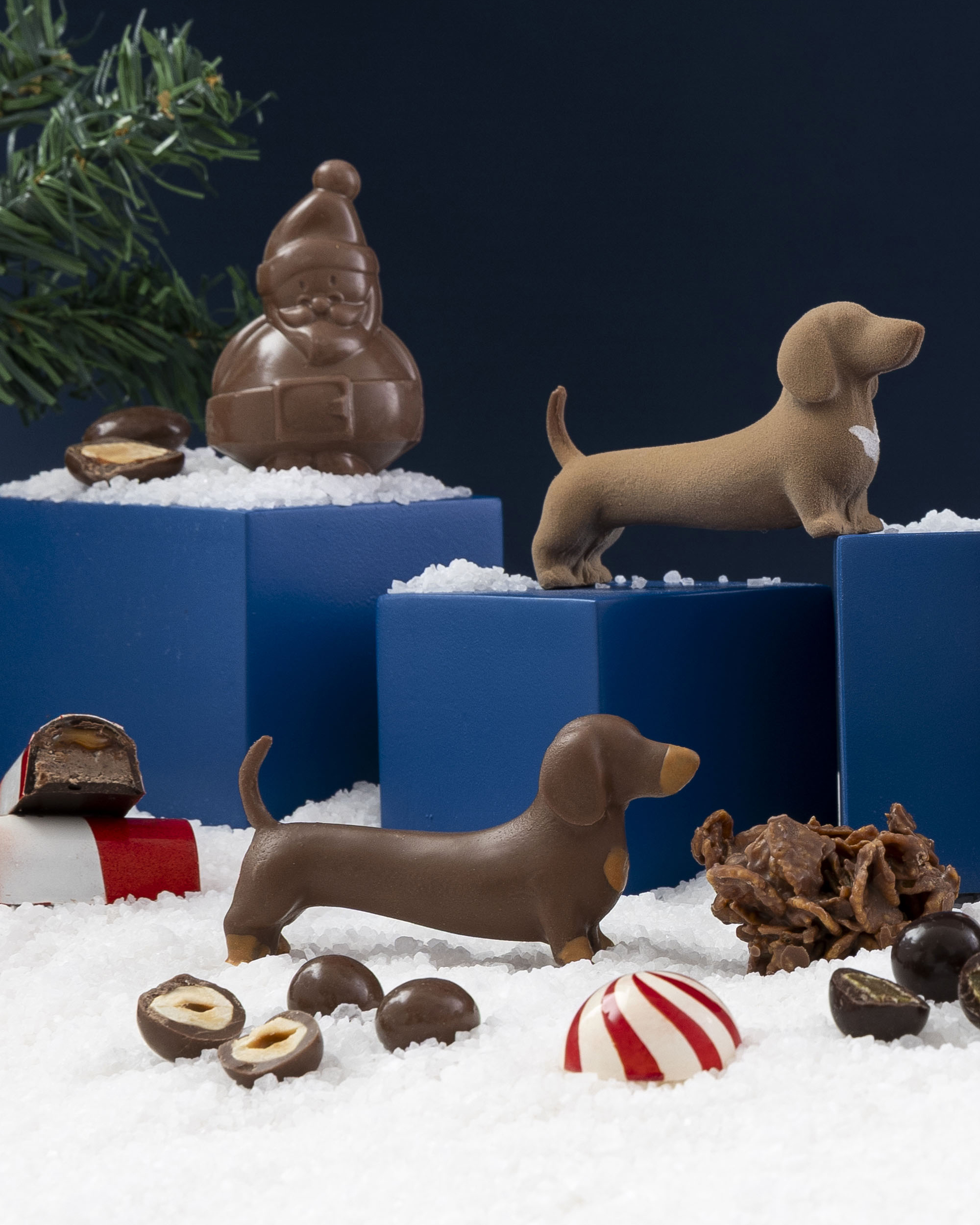 - ARBOLITOS: figuras de chocolate con leche belga 33.6% , rellenos de dulce de leche