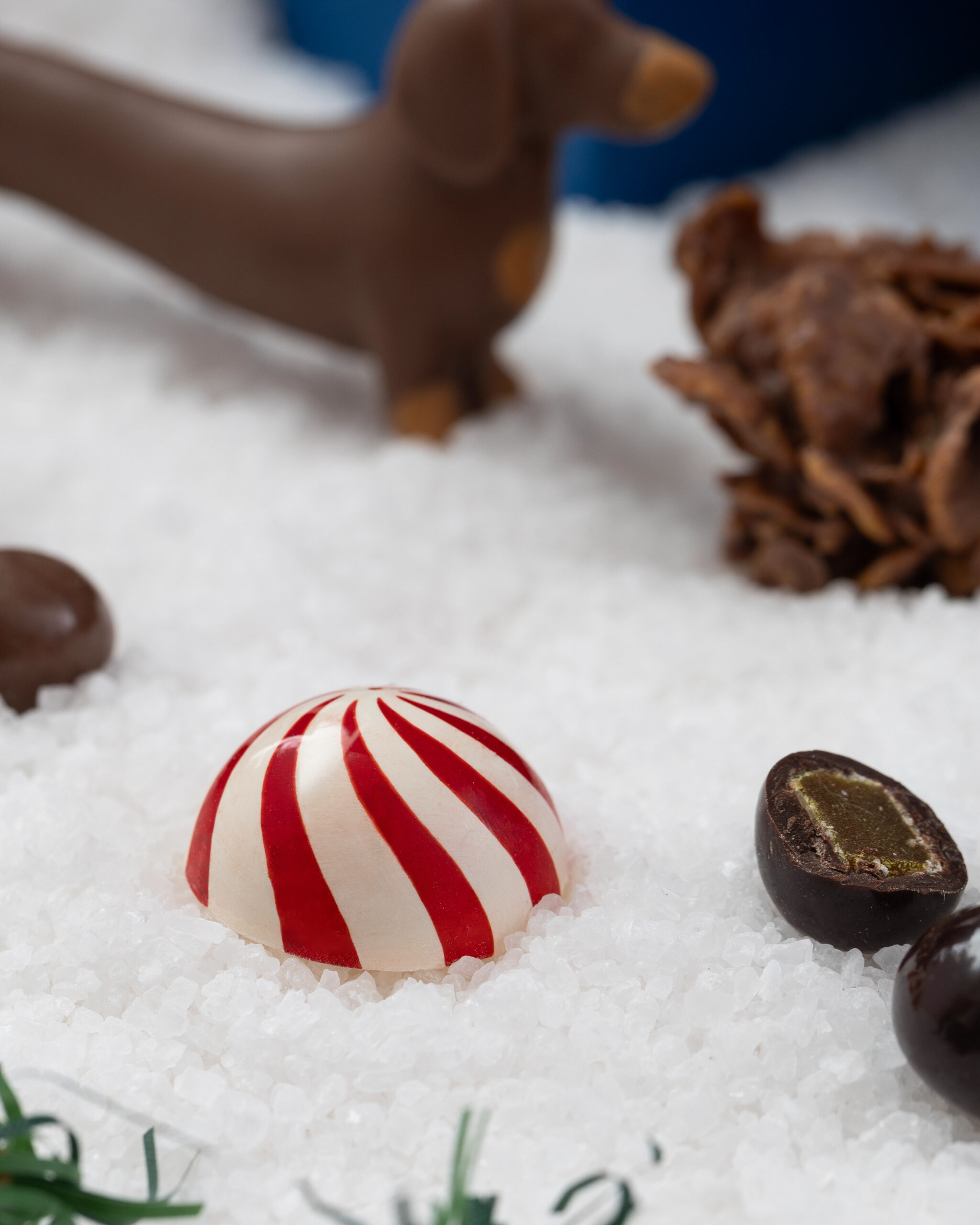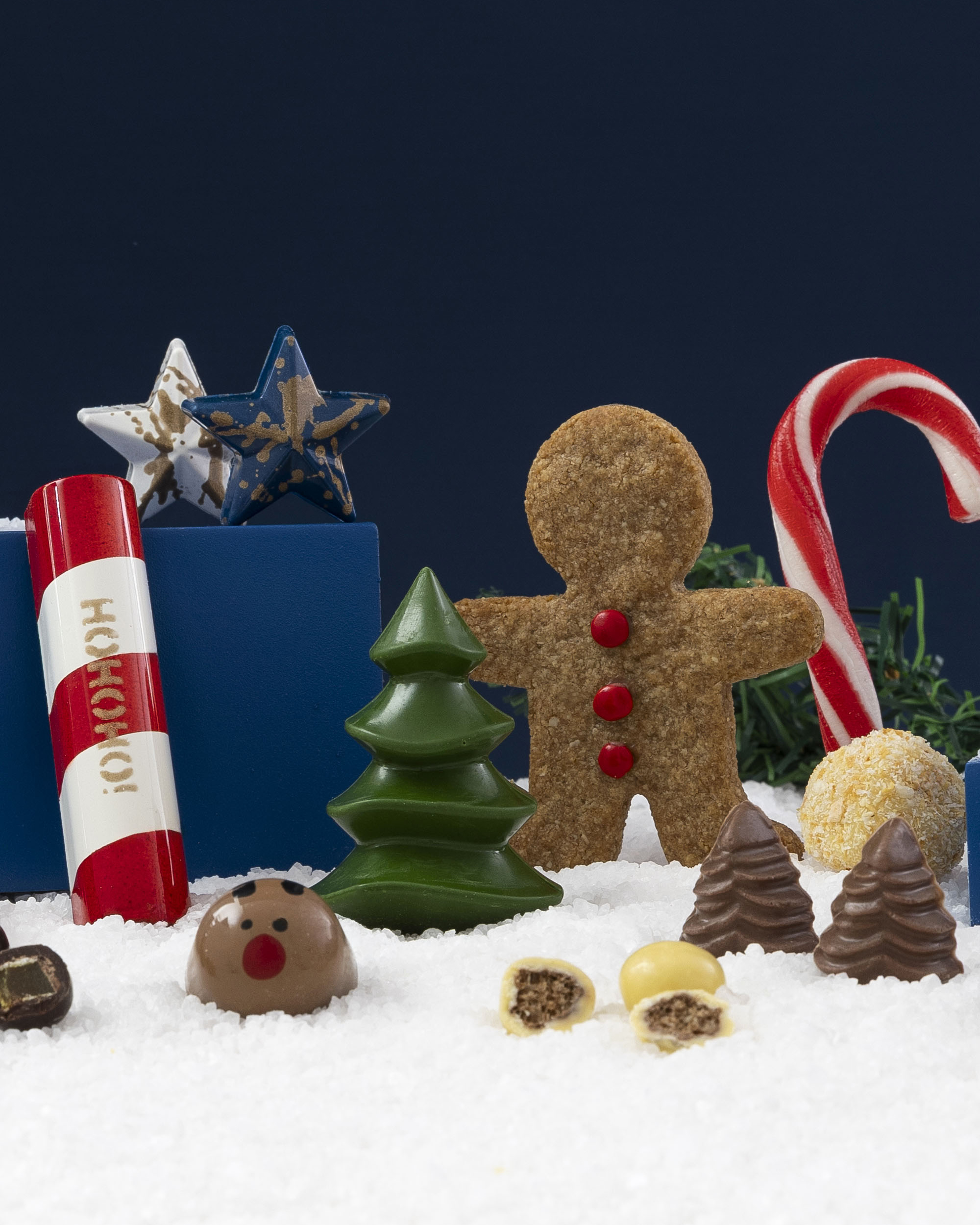 - LA ESTRELLA: de chocolate belga caramelizado 30.4%, rellena de gianduja de ginger bread, pintada a mano con manteca de cacao