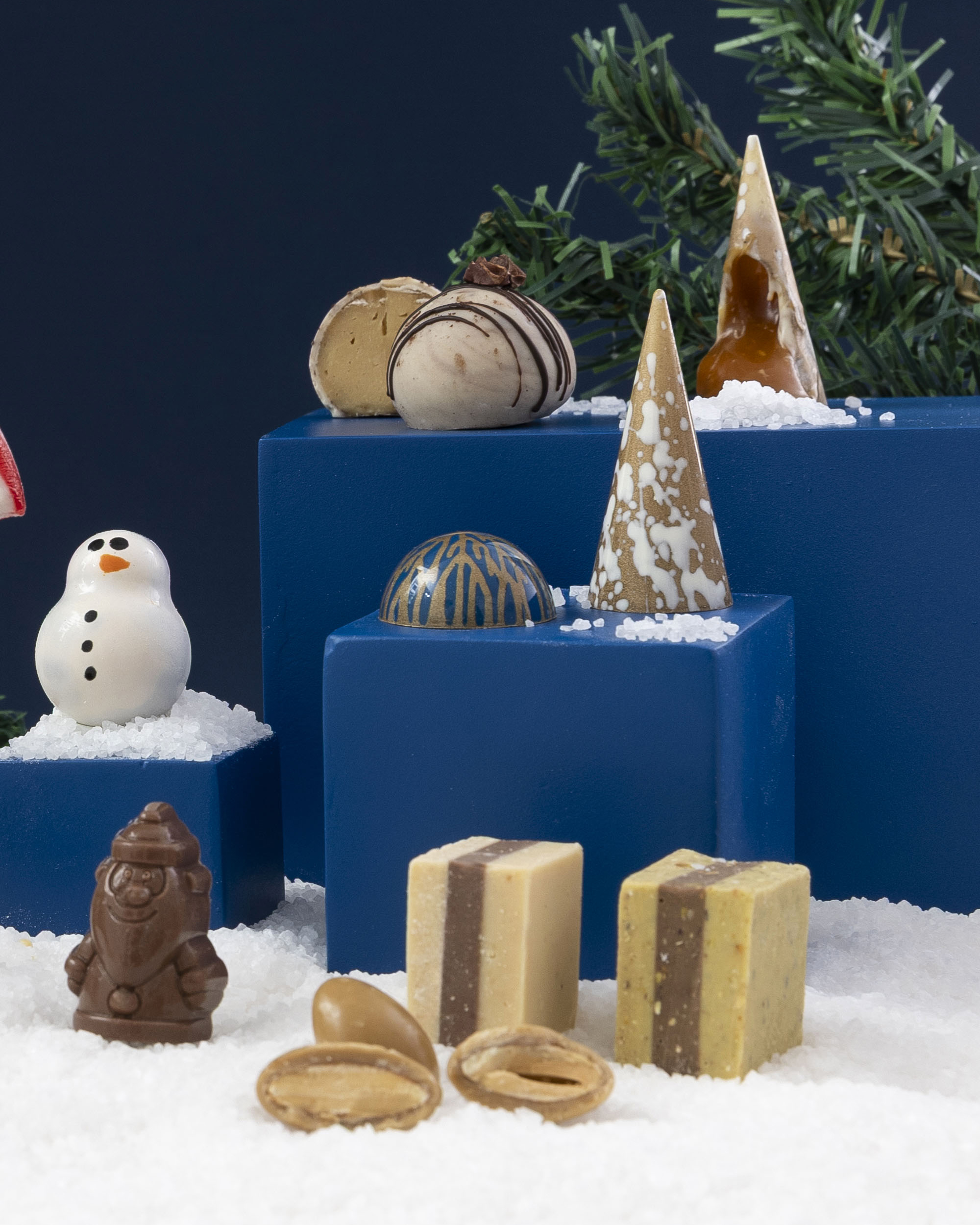 - EL PINO NAVIDEÑO: de chocolate belga blanco 28% , relleno de toffee salted caramel, pitado a mano con manteca de cacao