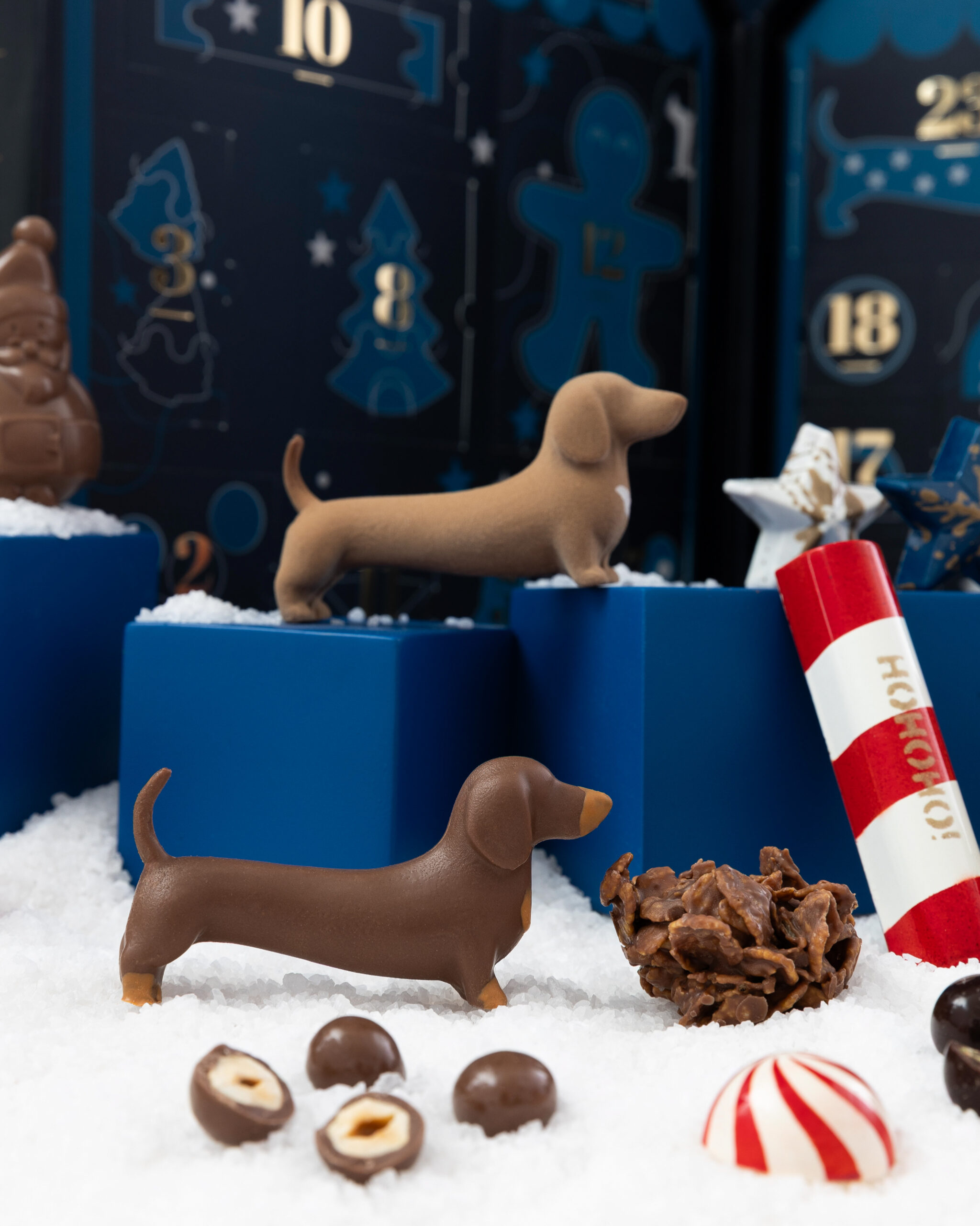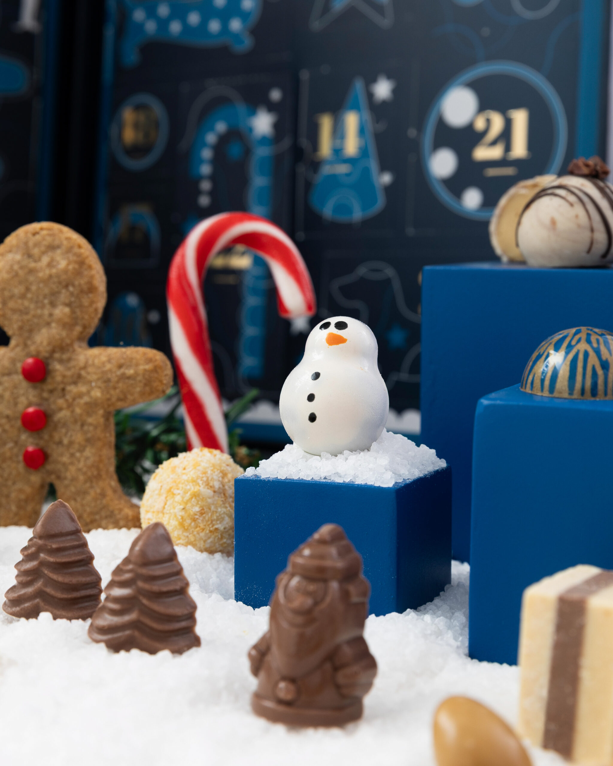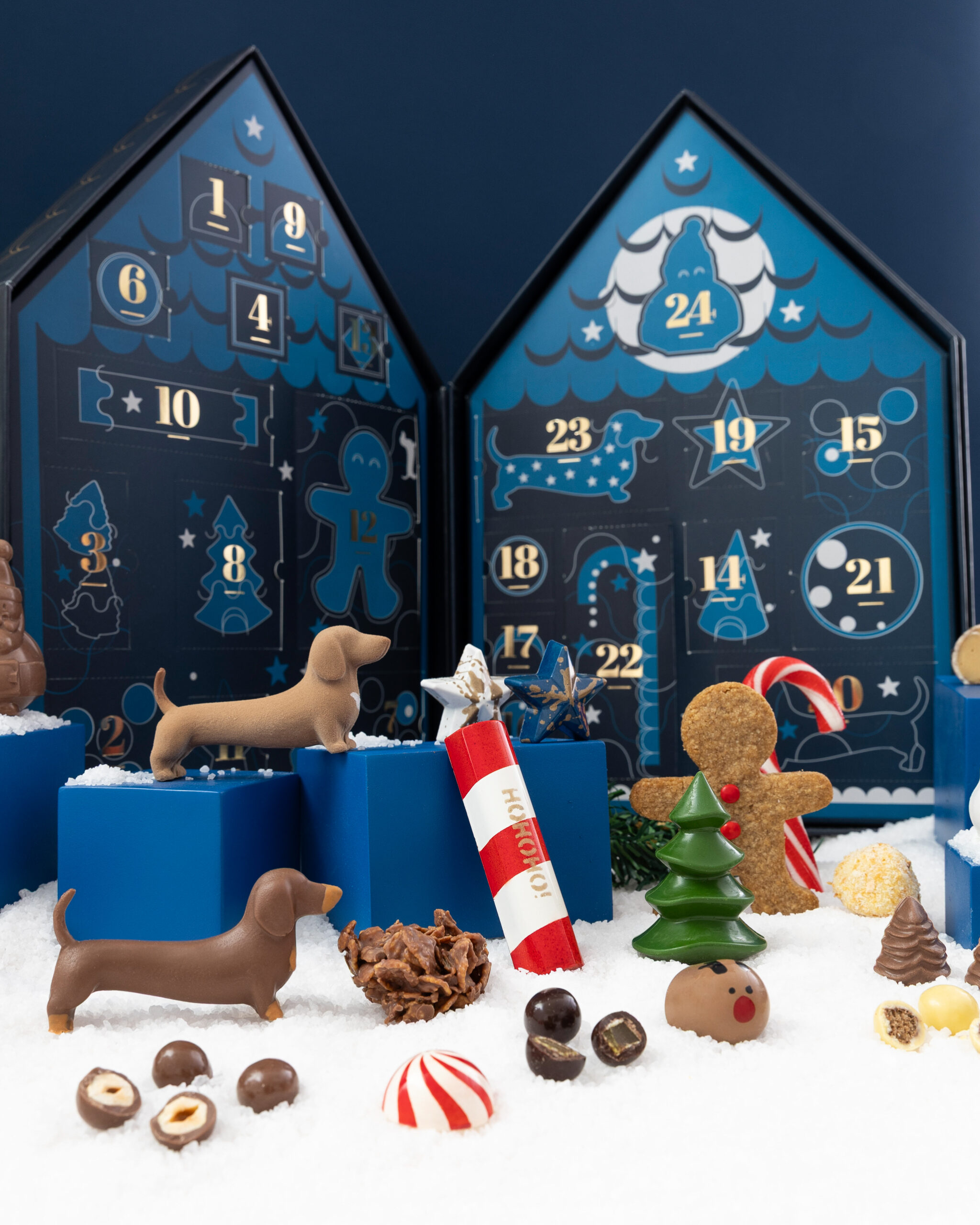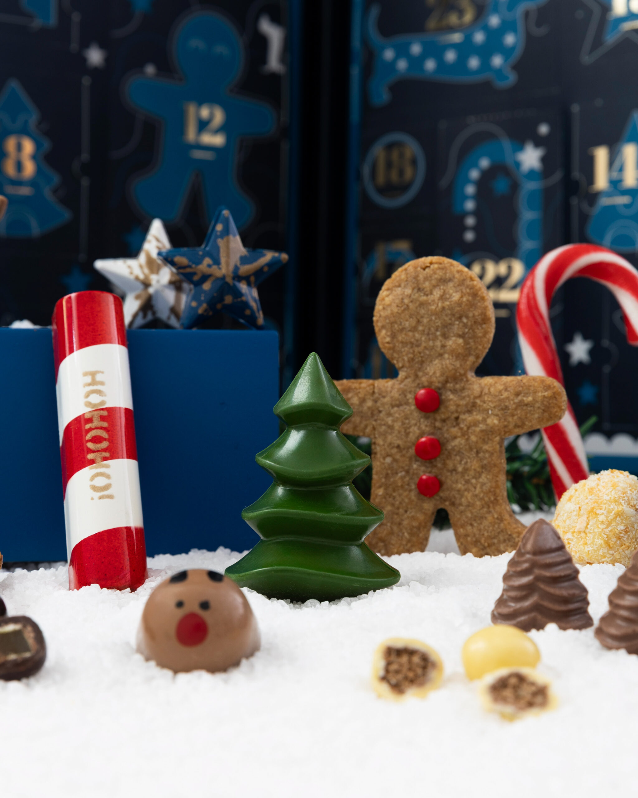 Una caja magica con 24 puertas para abrir cada dia de diciembre (cada puerta corresponde a un dia del mes). Detras de cada una encontraras una dulce sorpresa, seleccionamos lo mejor de nuestra chocolateria !