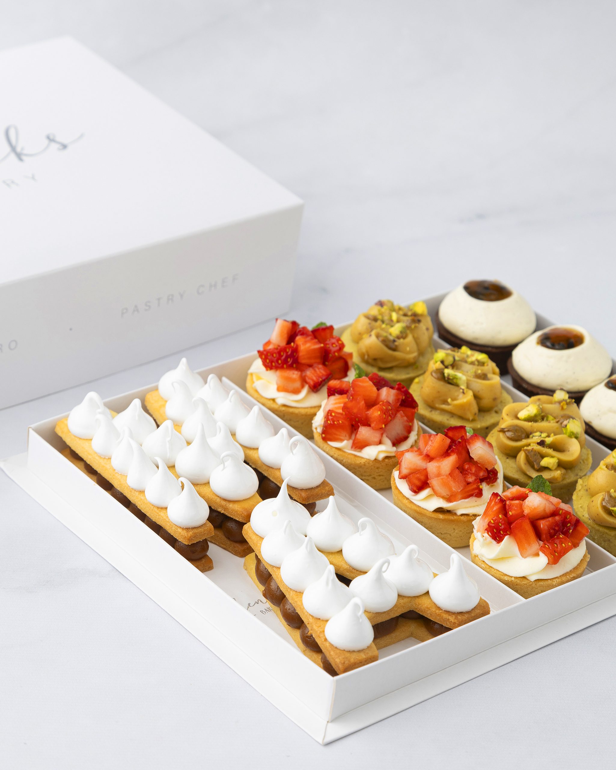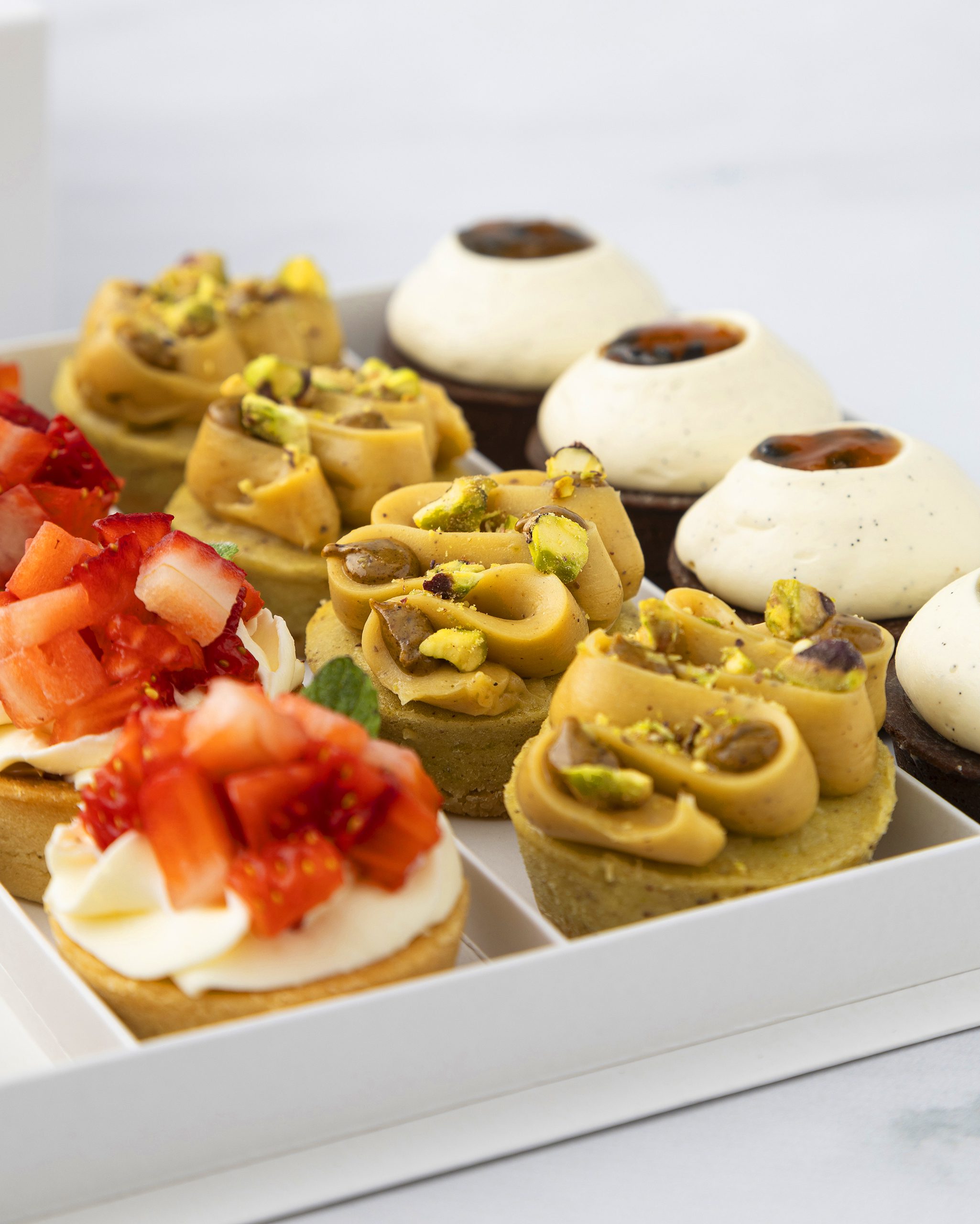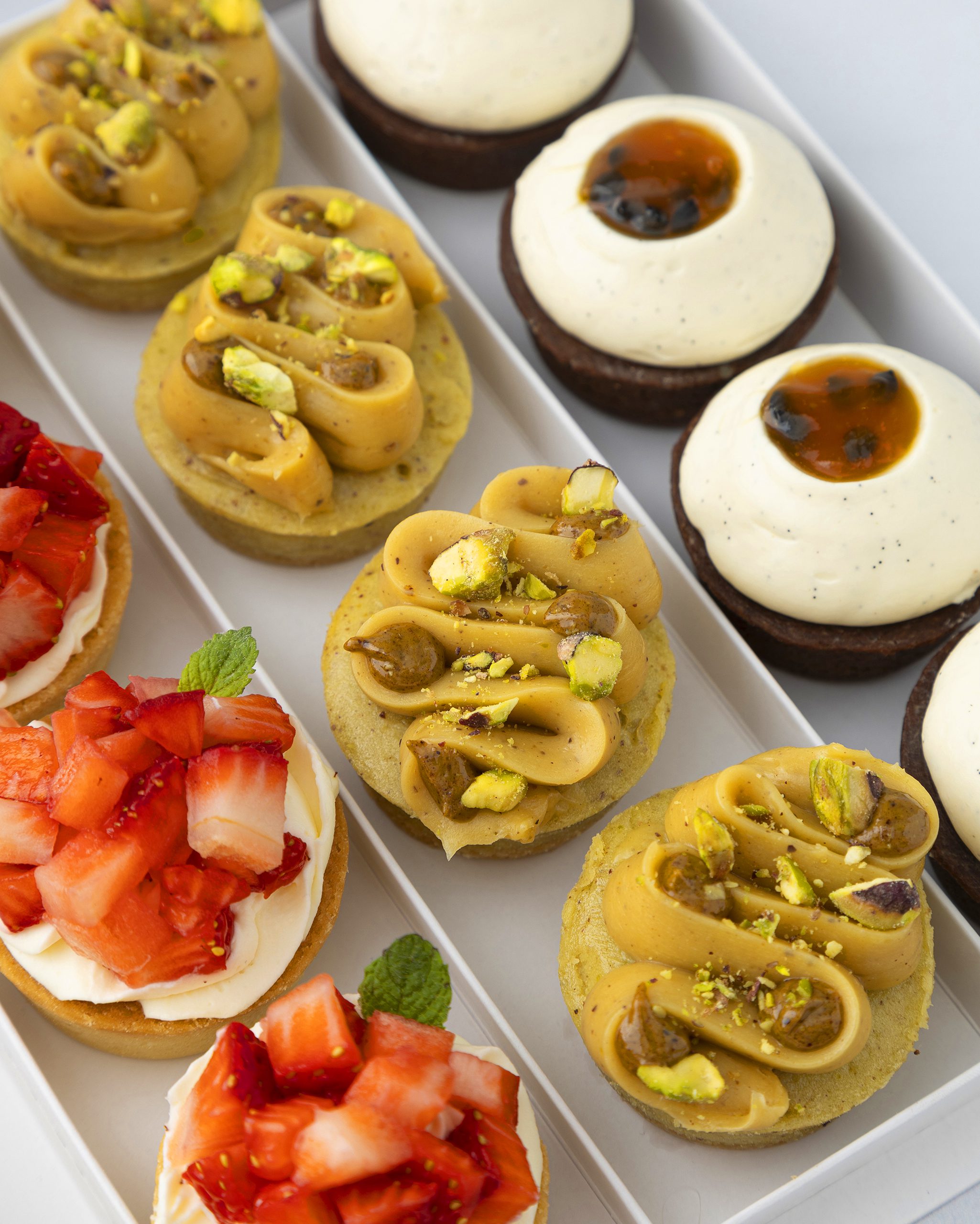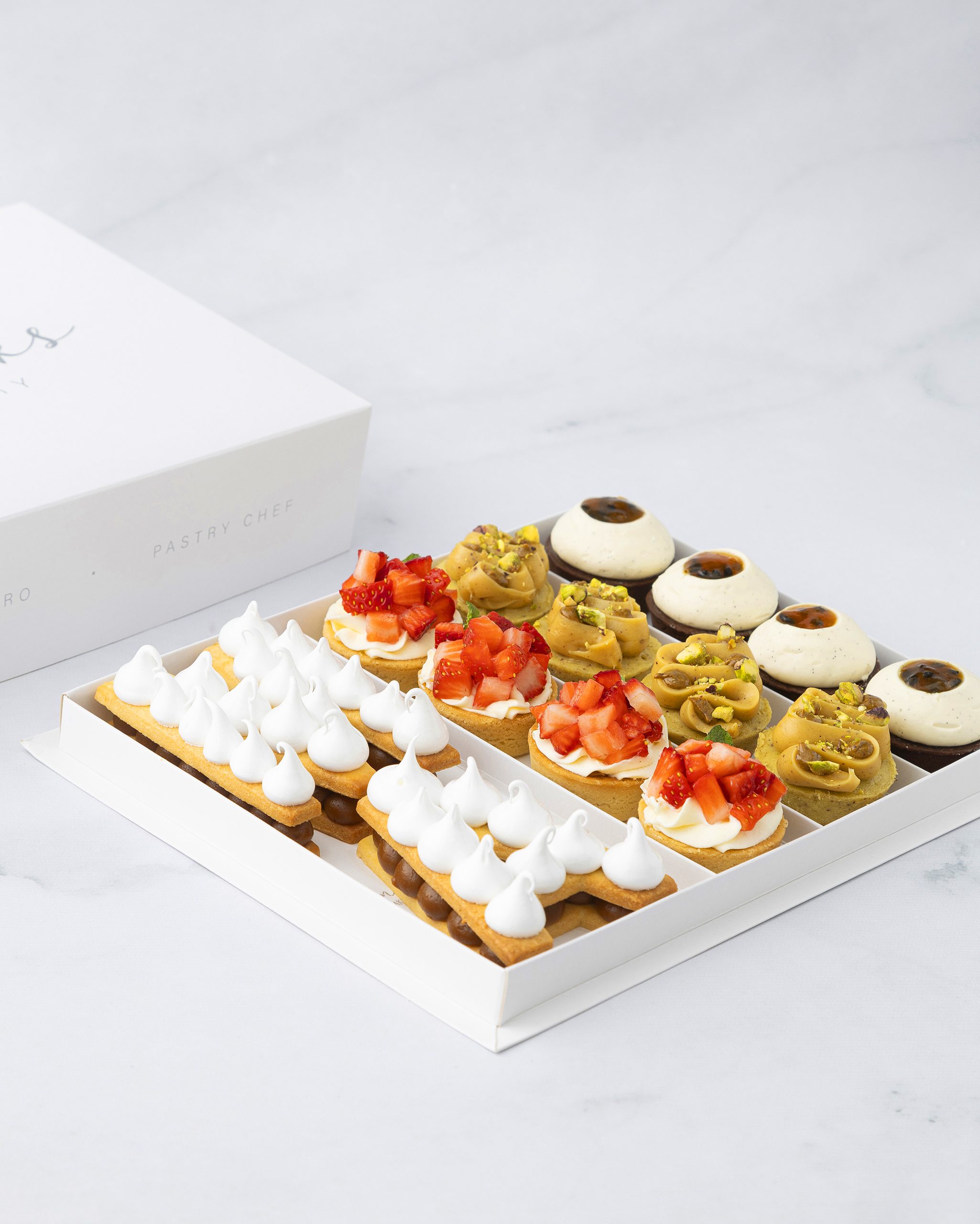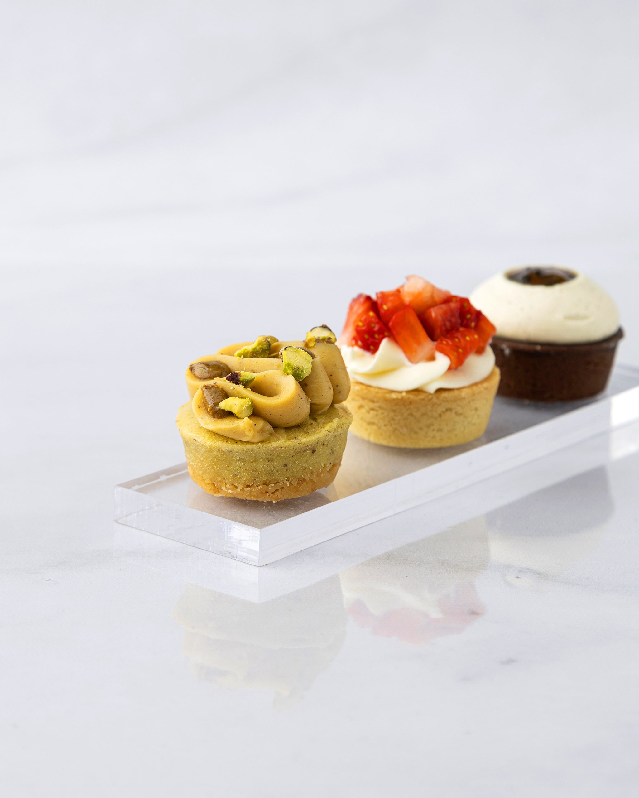 4 Petits Fours tarteleta de frutillas (sablee , dulce de leche , crema montada y frutillas )