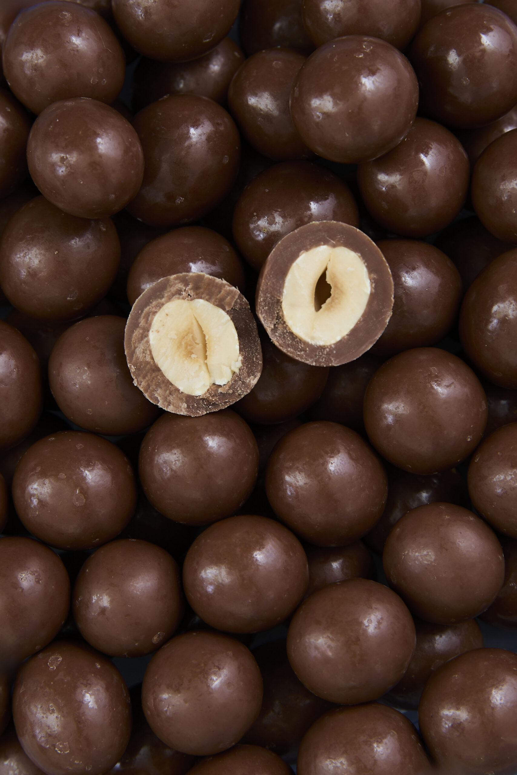 Avellanas caramelizadas bañadas en chocolate Belga con leche 33,6%